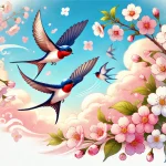 燕は、巣作りのために人の住む家の軒下などに飛来し、活発に飛び回る様子が春の風物詩とされています。また、燕は幸運を運ぶ鳥とされており、「燕の巣ができる家は繁栄する」といった言い伝えもあります。